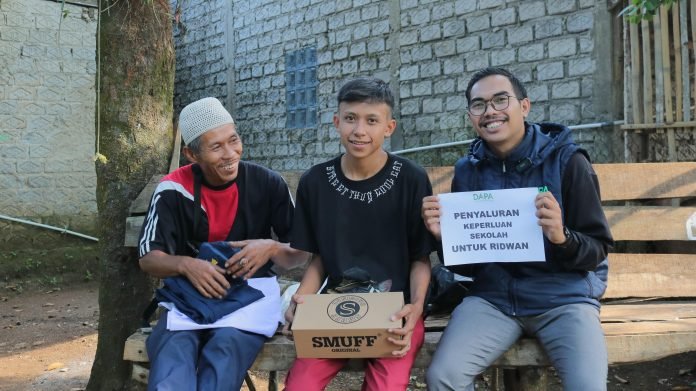 Alhamdulillah, team DAPA pada tanggal (13/07/2023) menyalurkan bantuan senilai 1 Juta berupa paket perlengkapan sekolah dan biaya pendaftaran untuk Ridwan yang beralamat di Desa Rajamandala, Kecamatan Cipatat, KBB