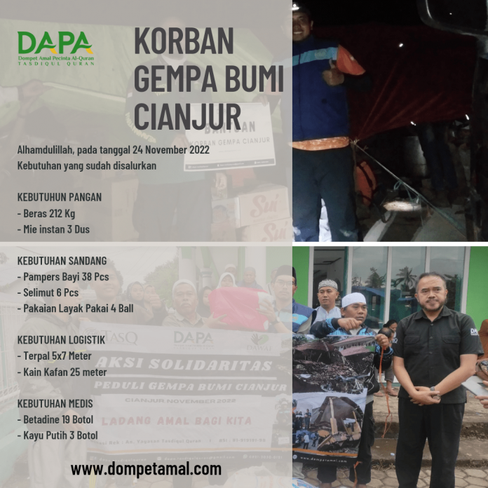 Jazakumullah khoiran katsiran kepada Dermawan, Lembaga maupun Instansi yang terlibat dalam kegiatan Peduli Bencana Gempa Bumi Cianjur.