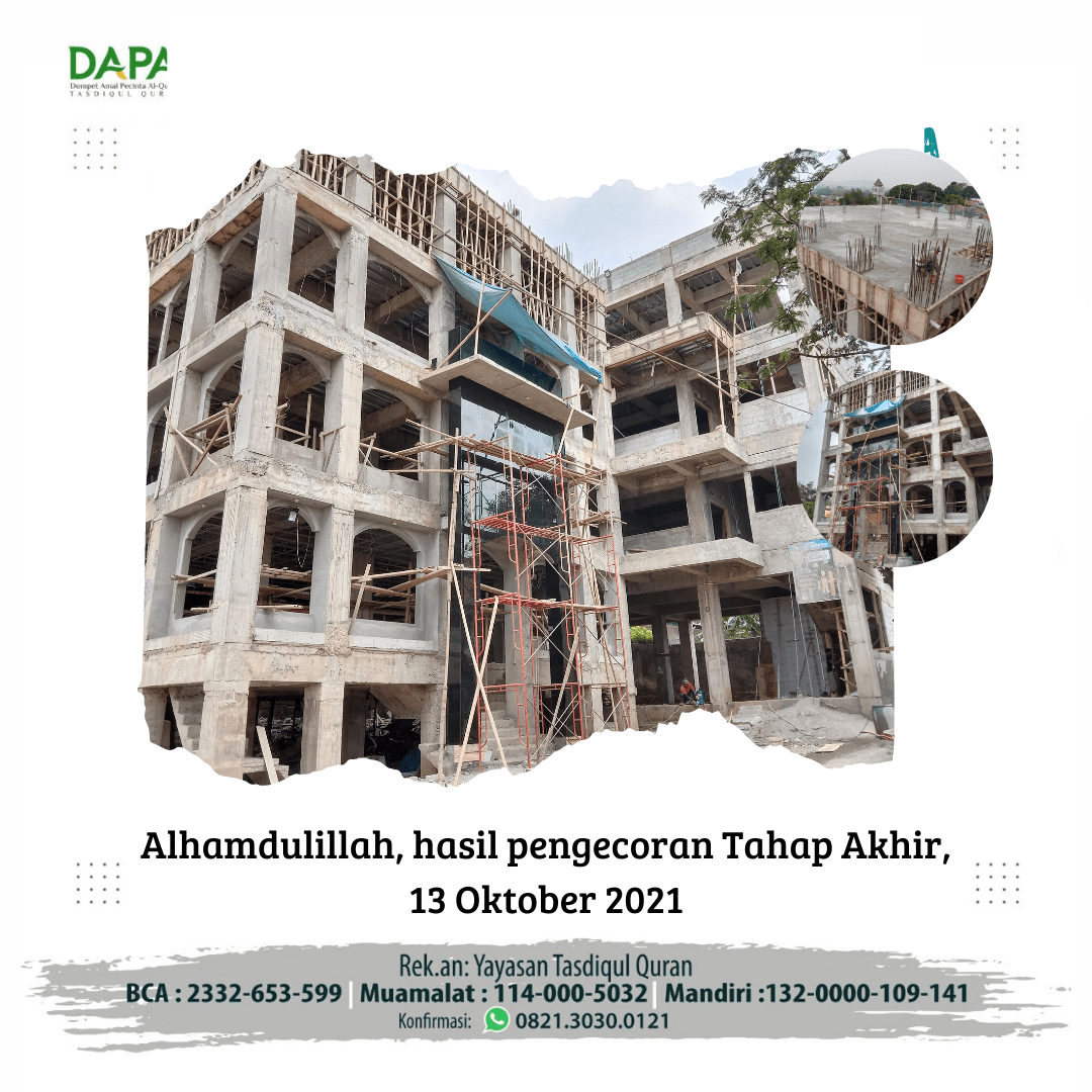 Alhamdulillah, kami ucapkan terimakasih yang sebesar besarnya kepada para pewakaf yang telah menyisihkan rezekinya untuk granit masjid Tasdiqul Qur’an.